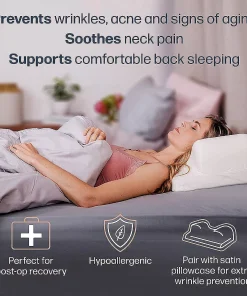 Designed to alleviate pressure on your face and skin, which can contribute to wrinkles, creases, acne, and overall ageing. Helps eliminate neck & shoulder pain contoured neck & shoulder support cooling air channels keeps head cool perfect for back & side sleepers memory foam for all night comfort.