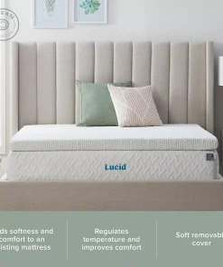 - The Dream Collection by Lucid 3″ Gel Memory Foam Topper with Breathable Cover is a great addition to any mattress that feels too firm for comfort and is perfect for side sleepers and those that prefer a deeper sink