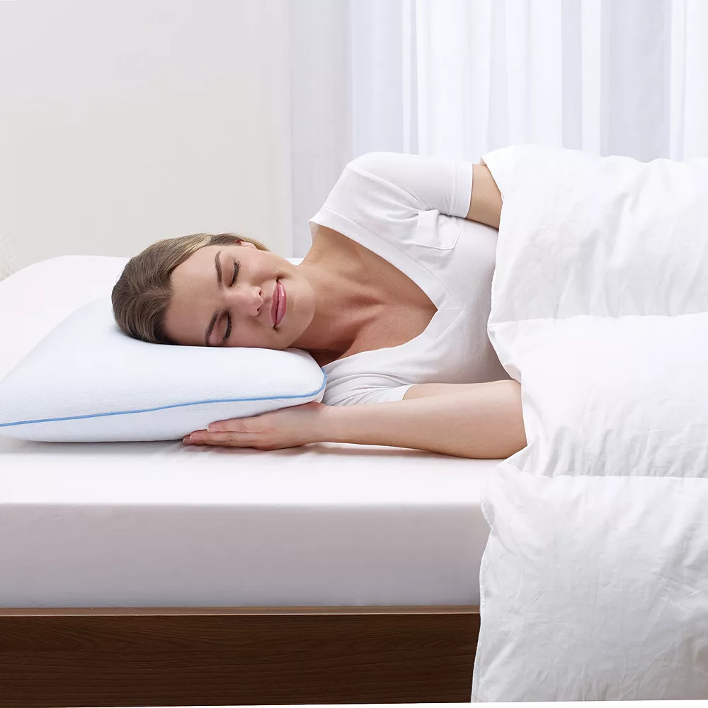 Stay cool and comfortable with this Serta Classic Cool Gel Memory Foam Pillow. In white.