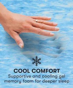 - Gives you double the cooling with 3″ gel memory foam and a cover with two types of cooling fibers