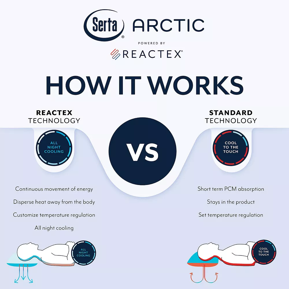 - Sleep comfortably all night long with cooling comfort combined with lofty fiber found in the Serta Arctic Cooling Fiber Pillow Powered by REACTEX