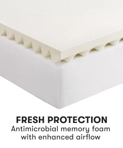 - 2.5″ of memory foam with enhanced airflow for a comfortable sleep temperature